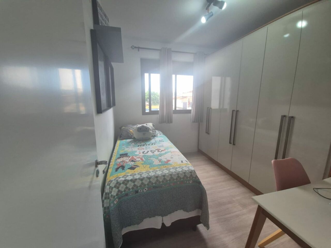 2 banheiros, sendo 1 suíte + 2 dormitórios com closet.